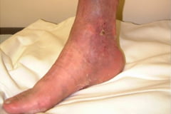 Åreknuter med pigmentering, eksem eller stiv/hard hud rundt ankelen.